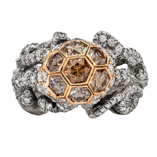 LION RING, 5.56 cttw, HONEYCOMB-HEXAGON DIAMONDS, 18K