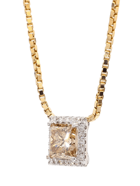 PRINCESS CUT DIAMOND NECKLACE, 3.02 CARAT, FANCY BROWN -YELLOW FRAMED WITH WHITE DIAMONDS, 14K YELLOW